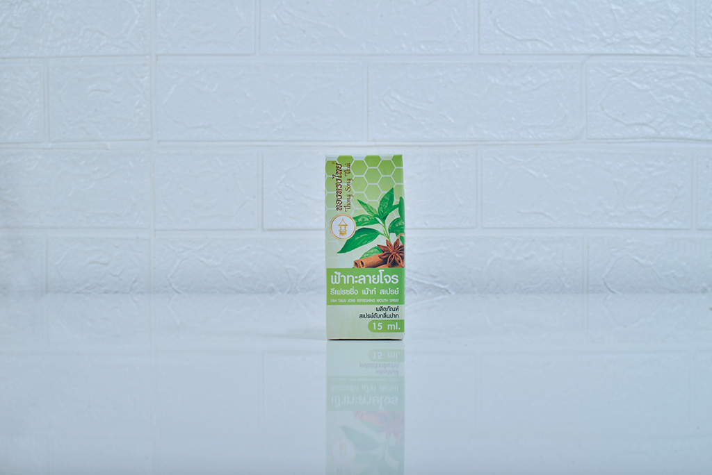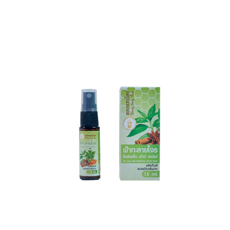 ทองทรงไทย รีเฟรชชิ่ง เม้าท์ สเปรย์ ตัวช่วย ป้องกัน + ยับยั้งเชื้อไวรัส ไม่ให้แพร่กระจายจากทางเดินหายใจลงสู่ปอด สเปรย์สำหรับช่องปากและลำคอผสมสารสกัด ฟ้าทะลายโจร กระชายขาว ขิง ชะเอมเทศ และสารสกัดสมุนไพรจากธรรมชาติอื่นๆ ปราศจากสารปฏิชีวนะ และน้ำตาล